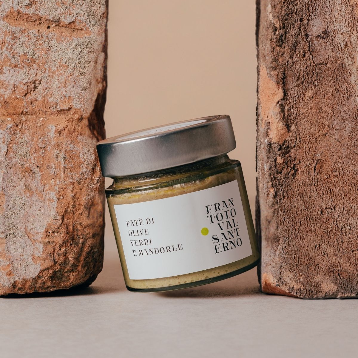 Cremoso patè di olive verdi e mandorle in vasetto da 200g.
